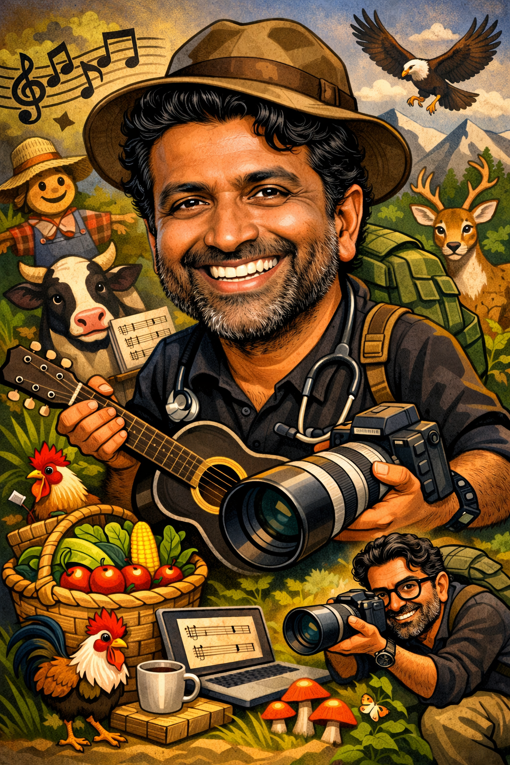 “I’m a person who is contented in life,aimed to radiate positive energy. An aspiring philanthropist who respects nature and its beings, acknowledge the past,true to the present self and concerned about future. Orthopaedic Surgeon by profession, Composer and singer by passion with interest in wild life trekking, farming and photography”